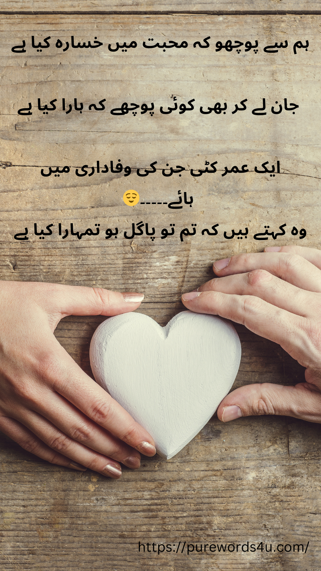 ہم سے پوچھو کہ محبت میں خسارہ کیا ہے جان لے کر بھی کوئی پوچھے کہ ہارا کیا ہے ایک عمر کٹی جن کی وفاداری میں ہائے۔۔۔۔۔ وہ کہتے ہیں کہ تم تو پاگل ہو تمہارا کیا ہے